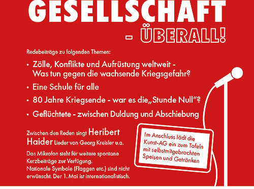 Das Mikrofon steht für weitere spontane Kurzbeiträge zur Verfügung. Nationale Symbole (Flaggen etc.) sind nicht erwünscht. Der 1. Mai ist internationalistisch.