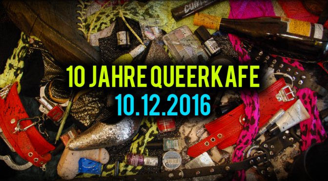 Dazu laden wir euch alle ein am 10.12. mit uns zu feiern! Es wird übergalaktisch! Erst wird es einen schönen Vortrag geben zum Thema „Coming out…? Zum Verhältnis von Sichtbarkeit und Politik heute“, danach erfahren wir ein bisschen etwas über die Anfänge des Queerkafe’s und dann, wenn der Alkoholpegel angemessen ist, folgt eine grandiose Tuntenshow mit viel Schungeligkeit, Glitzer und Schaumwein.