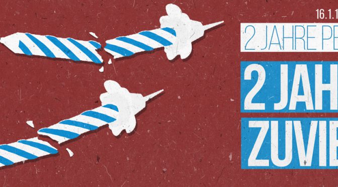 Kam es bei den ersten Pegida-Aufmärschen noch zu Gegenkundgebungen mit mehreren zehntausend Teilnehmer*innen, interessieren sich Stadt und Zivilgesellschaft mittlerweile kaum noch für die wöchentlichen Naziaufmärsche. Jenseits der medialen Aufmerksamkeit bemüht sich die Polizei den Rassist*innen den Weg freizuprügeln und überzieht Antifaschist*innen mit Repression. Zwei Jahre sind zwei Jahre zuviel! Für eine solidarische Gesellschaft jenseits von Rassismus, Ausgrenzung und Ausbeutung!