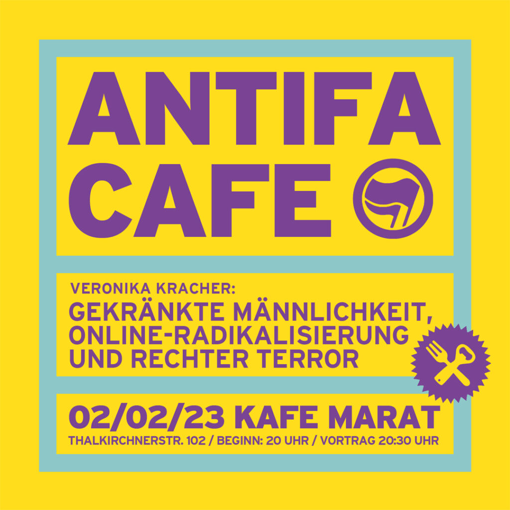 acfeb Januar 13, 2023 1080 × 1080 Antifa-Café: Gekränkte Männlichkeit, Online-Radikalisierung und rechter Terror (Veronika Kracher)