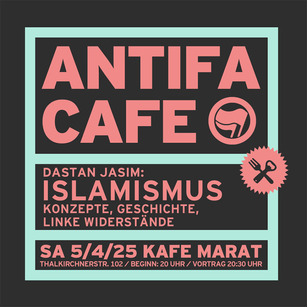 da März 13, 2025 1080 × 1080 Antifa-Café: Islamismus: Konzepte, Geschichte, linke Widerstände (Dastan Jasim)