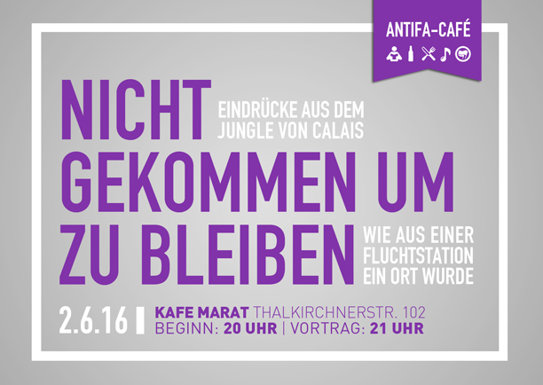 Mai 9, 2016 612 × 434 Antifa-Café: Nicht gekommen um zu bleiben. Eindrücke aus dem Jungle von Calais