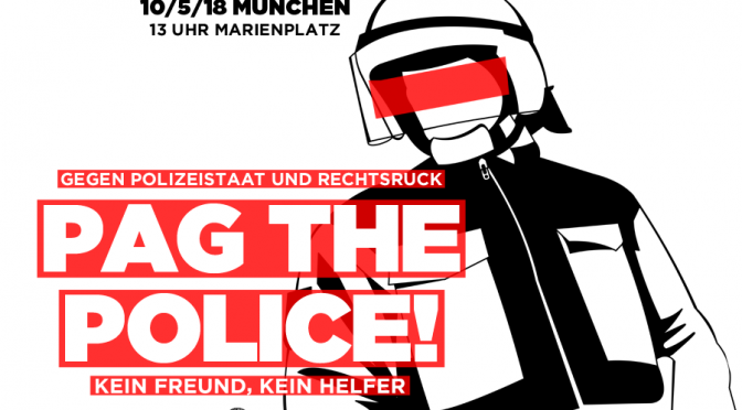 Mit den Plänen zu einem neuen Polizeiaufgabengesetz (PAG) will die CSU-Staatsregierung die Befugnisse der Polizei in einem seit 1945 nicht gekannten Maße ausweiten. Neben dem Abbau rechtstaatlicher Schranken, wie Gerichtsurteilen, und dem Ausbau geheimdienstlicher Befähigungen, beinhaltet das neue PAG Pläne für den Einsatz von Drohnen, Staatstrojanern oder V-Leuten und eine nahezu militärische Aufrüstung der Einsatzkräfte. Getragen von einer aufgebrachten Anti-Terror-Stimmung werden die Folgen des PAGs weite Teile der Bevölkerung treffen.