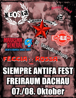 Auch das „Backstage“ an sich hat wenig Berührungsängste, wenn es um die Auswahl der auftretenden Bands geht. Rechtsoffene Bands (Krawallbrüder, Varg) und Dancehall Acts (Sizzla), die Homosexuelle in Texten erschießen und verbrennen wollen: Für sie alle stellt das „Backstage“ bereitwillig seine Bühne zur Verfügung. Was zählt ist der reine Kommerz. Darin ähneln sich „Backstage“ und die Macher_innen des POGORAUSCH. Das Motto ist vorgeschoben. Antirassimus, Feminismus und Solidarität werden durch solche Veranstaltungen vollständig sinnentleert. Mit dem „Antipogorausch – Siempre Antifa“-Fest wollen wir zum einen emanzipatorische Ansätze in Subkulturen supporten, zum anderen ein Zeichen gegen pseudo-rebellisches Stammtischgemackere setzen.