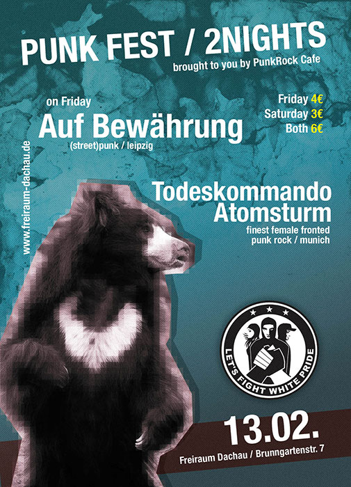 Januar 25, 2015 505 × 700 [Dachau] PunkFest #1: Auf Bewährung (Leipzig) Todeskommando Atomsturm (München)