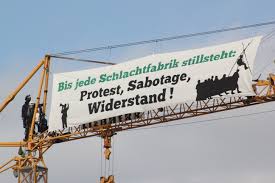 Standing conveyor belts. Animals are not processed into goods. Workers have free. Blockades are a direct attack on the profit rates of the slaughter factories. Snitch, Jail, SEK and sharp dogs the state response to it.