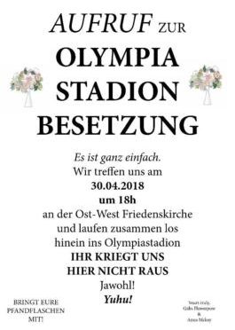 Inspiriert von Ideen zur Rückeroberung des Stadtraums wollen McCarthy und Blum Väterchen Timofei und Nataschas Stolz mit einer Prozession ehren – ein Aufruf der ermächtigten (sogenannten) „Schwachen“ und von Münchens „Außenseitern“ an die Bevölkerung, die Dinge wieder selbst in die Hand zu nehmen und das Olympia Stadion symbolisch zu besetzen. Denn wenn selbst