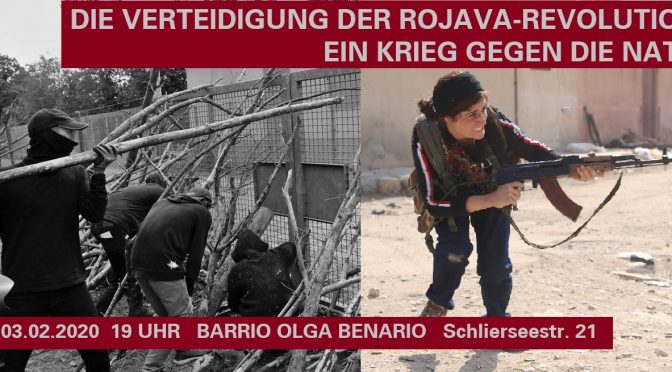 Die Türkei führt aktuell einen militärischen Angriff mit verbündeten islamistischen Milizen auf das Projekt Rojava (Westkurdistan), die demokratische, multiethnische und feministische Selbstverwaltung von Nord- und Ostsyrien. Dagegen leisten Kämpfer_innen der Syrischen Demokratischen Kräfte/SDF, der Volksverteidigungskräfte/YPG und der Frauenverteidigungskräfte/YPJ einen heldenhaften Widerstand, um die Revolution in Rojava zu verteidigen. Doch ohne die Zustimmung der Militärallianz NATO und ohne die wirtschaftliche und militärische Unterstützung durch NATO-Staaten wie Deutschland könnte die Türkei heute keinen Krieg in Kurdistan führen. Die verbrecherische Kriegspolitik der Türkei ist Bestandteil der NATO-Strategie und ihrer Interventionen im sogenannten Nahen und Mittleren Osten.