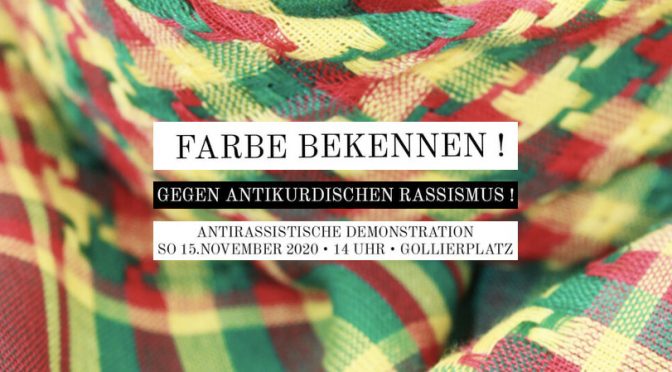Heraus gegen antikurdischen Rassismus und türkischen Faschismus! Kommt am So, 15.11.2020 um 14.00 Uhr zum Gollierplatz (Schwanthaler Höhe, München) und zeigt euch solidarisch: