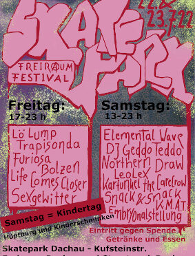 Der Freiraum Dachau feiert am 22.&23 Juli ein DIY-Open-Air-Festival am Skatepark Dachau!