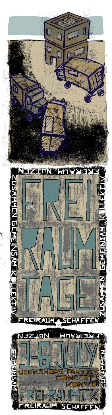 Schaut doch rum und seid dabei! Wir werden mit den Freiraum-Tagen neue und bestehende Projekte in München und Umgebung vorstellen und wollen euch ermutigen, euch in bestehenden Projekten auszutoben oder selber etwas Neues auf die Beine zu stellen. Euch erwarten diverse Workshops, Konzerte und ein Konvoi durch Münchens Straßen. Nicht zu kurz kommen wird auch die Frage der Bedrohung von Freiräumen durch die kapitalfreundliche Stadtpolitik.