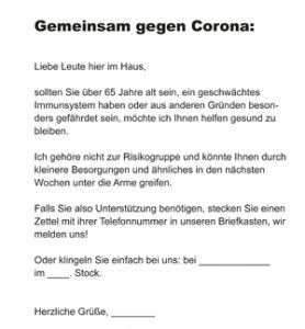 Mit solchen Aushängen könntet ihr euch zum Beispiel an eure Nachbar*innen richten: