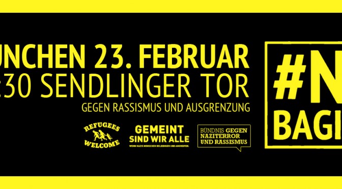 Am 23. Februar plant Bagida erneut einen Aufmarsch in München. Das soll nicht ohne Protest gegen Rasissmus und Ausgrenzung über die Bühne gehen!