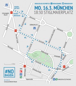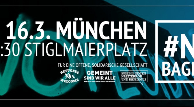 Dennoch können wir nicht oft genug darauf hinweisen, dass auch die schwindene Anzahl Rechte bis extrem Rechte, die mittlerweile immer ungestörter durch München Straßen laufen und ihren Anfeindungen, Wahnsinnigkeiten und Vernichtungsdrohungen freien Lauf lassen können, ein Skandal und für uns nicht hinzunehmen sind. Auch die ca. 100 Teilnehmenden des letzten Bagida-Marsches sind immer noch eine weit größere Teilnehmerzahl, als bei den meisten „klassischen“ Naziaufmärschen in der letzten Zeit. Lasst uns also gemeinsam den Niedergang von Bagida mit lautstarkem Protest beflügeln!
