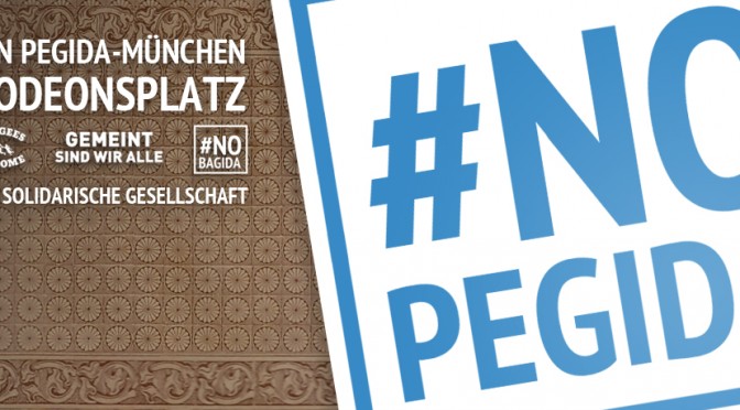 Seit Januar verbreitet der Münchner Pegida-Ableger wöchentlich rassistische Hetze in der Stadt. Bei dieser Sammlungsbewegung handelt es sich nicht nur um klassische Nazis und andere bereits als extrem rechts bekannte Gruppierungen. Doch dass diese Vorstellungen auch von „ganz normalen Bürger_innen“ auf die Straße getragen werden, macht ihren Rassismus nicht weniger bedrohlich, sondern zeigt, wie weit menschenverachtende Einstellungen in die so genannte Mitte der Gesellschaft reichen. Die weit über hundert rassistisch motivierten Morde seit der Wiedervereinigung, die Terrorakte des NSU und die in jüngster Zeit stark zunehmende Zahl von Anschlägen auf vermeintlich Nicht-Deutsche zeigen, wie schnell rechte Einstellungen in furchtbare gesellschaftliche Realität umschlagen können. Lasst die rassistische und nationalistische Hetze nicht ungestört über die Bühne gehen!