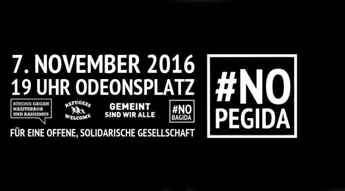 Der Aufmarsch soll am Odeonsplatz, dem Ort des 1923 geschieterten Hitlerputsches stattffinden. Da es sich zeigt, dass die Verbotspolitik der Stadt kein wirksames Mittel gegen Pegida ist, ist es um so mehr Aufgabe der Zivilgesellschaft, die rechte Hetze nicht unwidersprochen geschehen zu lassen und Aufmärsche wie diesen zu verhindern. Letztes Jahr konnte der Aufmarsch von Pegida am 9. November erfolgreich durch mehrere tausend Menschen an der Münchner Freheit blockiert werden, daran gilt es anzuknüpfen.