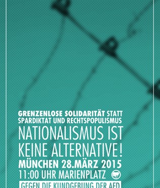 Die nationale Abschottung, die uns die AfD als Alternative verkaufen will, ist keine. Gegen die falsche Wahl zwischen nationalem Standortinteresse und dem Europa des Kapitals setzen wir auf grenzenlose Solidarität.
