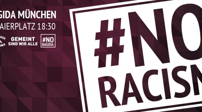 Auch am 1. Juni wollen extrem Rechte wieder ihre rassistische Hetze auf die Straße tragen. Nach internen Streits tritt Bagida mittlerweile unter dem Namen “Pegida-München” auf. Ansonsten hat sich nichts geändert: Weiterhin marschiert ein schräges “Volk” aus Rechtspopulist_innen, Nazis und Verschwörungstheoretiker_innen gegen eine sogenannte Islamisierung – wahlweise auch Amerikanisierung – eines sogenannten Abendlandes, gegen Chemtrails, GEZ oder die BRD Gmbh. Immerhin kann sich die Patchwork-Rechte auf ein gemeinsames Feinbild einigen: Asylsuchende (“Illegale”) und Menschen mit Migrationsgeschichte (“Eindringlinge”) deren vorgebliche kollektive Charaktereigenschaften und Lebensweisen als inkompatibel mit Deutsch- und Abendland verstanden werden. Wenngleich Bagida/Pegida-München in den letzten Wochen massiv an Relevanz und Aufmerksamkeit eingebüßt hat, ist es dennoch nötig diesem kulturalistischen, völkischen und rassistischen Quatsch etwas entgegen zu setzen. Wir rufen daher zum Protest gegen Rassismus und Ausgrenzung und für eine offene, solidarische Gesellschaft auf.