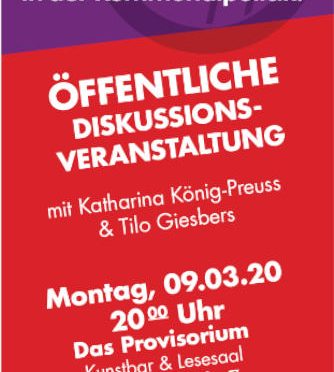 Mit zwei ausgewiesenen Kenner*innen der Materie – der LINKEN-Politikerin Katharina König-Preuss und dem Journalisten Tilo Giesbers – wollen wir in einem moderierten und für das Publikum offenen Podiumsgespräch all diese Themen anzusprechen versuchen.