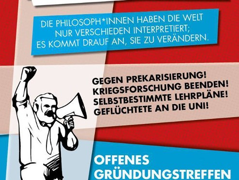 Karl Marx schreibt in seiner elften und letzten „These gegen Feuerbach“: Die Philosoph*innen haben die Welt nur verschieden interpretiert; es kommt drauf an, sie zu verändern. Wir wollen die Uni verändern, um die Welt zu verändern. Sie soll eine Uni der Beschäftigten und Studierenden werden anstatt dem Kapital zu dienen. Wir wollen einen Marxismus, der interveniert – das bedeutet: