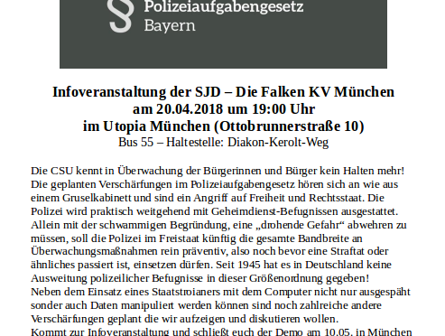 Kommt zur Infoveranstaltung und schließt euch der Demo am 10.05. in München an!