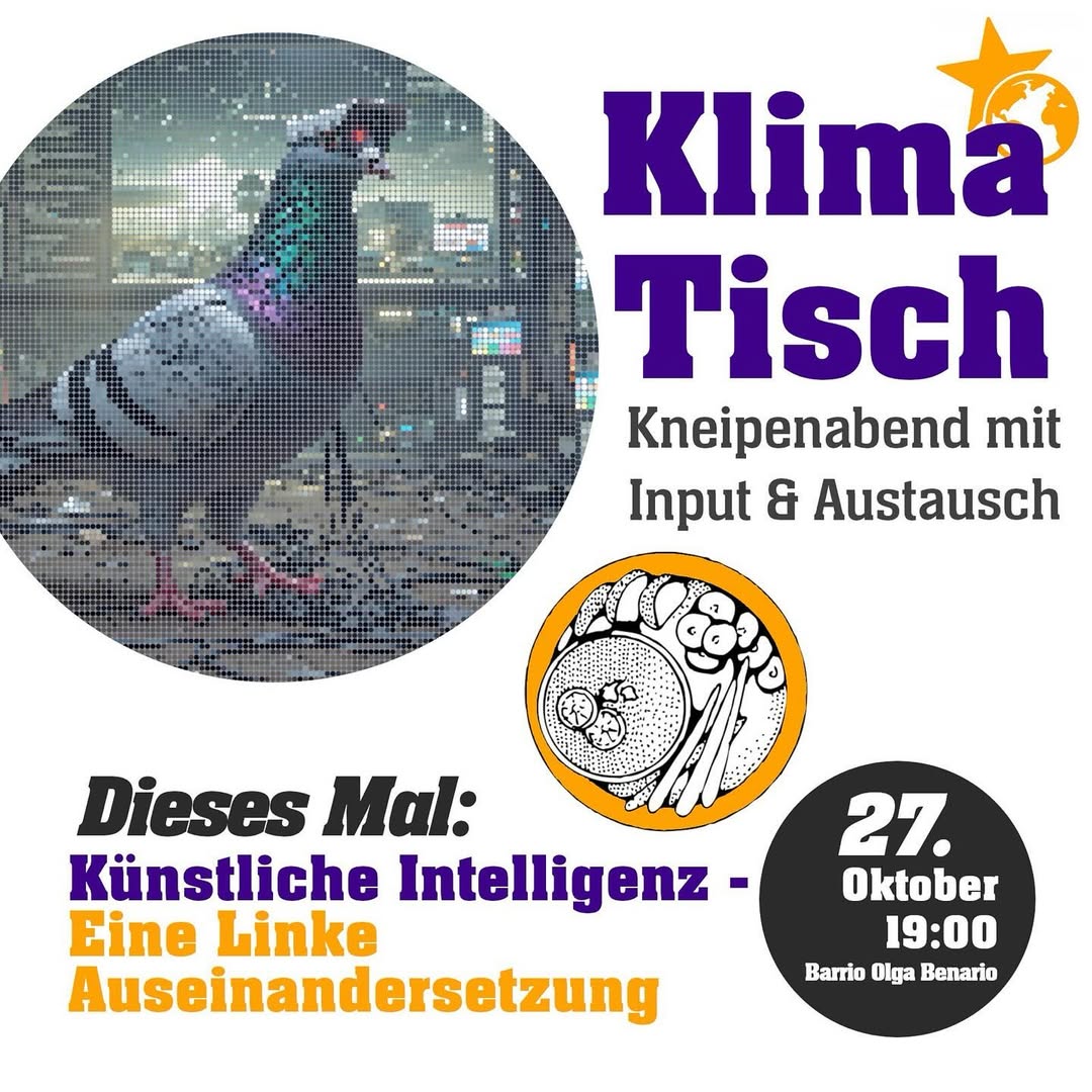 Wie reproduziert KI gesellschaftliche Verhältnisse? Was hat KI für eine Auswirkung auf die Umwelt? Und was hat der ganze KI-Hype mit der systemischen Krise des Kapitalismus zu tun? Nach einem anfänglichen Input lädt der KlimaTisch dazu ein, bei leckerem Essen und Getränk zu diskutieren.