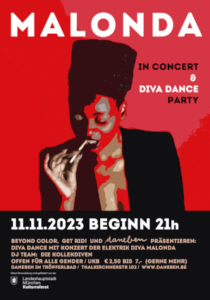 She toured through Germany with Laing, Großstadtgeflüster and Jens Friebe, and has played big German showcase venues such as c/o Pop-Kultur Berlin and the Reeperbahnfestival. With the grace of a Hildegard Knef and the power of a Grace Jones, Malonda celebrates on stage – and one can neither take one´s eyes, nor one´s ears, off of her.