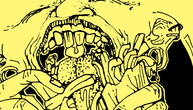 Grindcore-One-Man-Band, die beim Spielen Fritten frittiert.