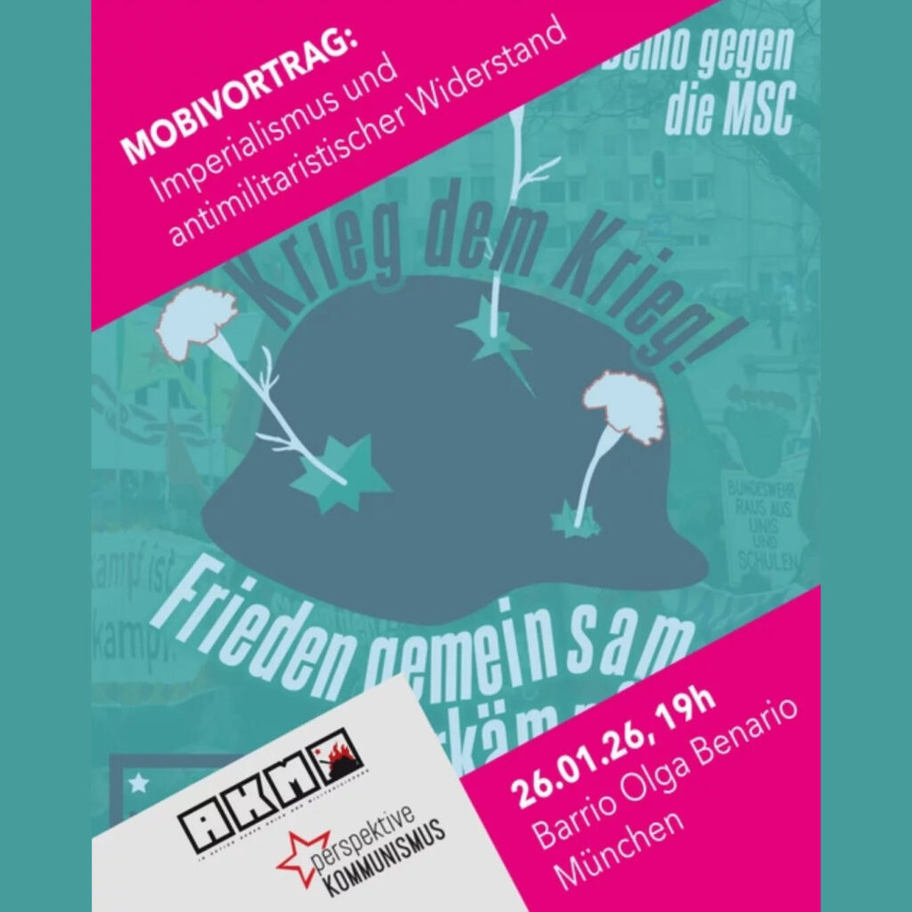 615238492_18033489737751000_2968030252597570863_n Januar 14, 2026 1350 × 1350 Mobivortrag gegen die SiKo: Imperialismus und antimilitaristischer Widerstand