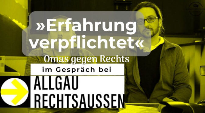 Seit mehr als fünf Jahren organisieren sich (nicht nur) Großmütter gegen den Rechtsruck und mischen sich in politische Diskurse ein – so auch am Bodensee und im Allgäu. Darüber spricht Allgäu rechtsaußen am Mittwoch dem 6. September 2023 ab 20 Uhr im Livestream mit den Omas gegen Rechts Doris und Margarete.