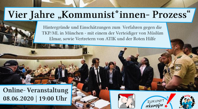 Nach nunmehr 4 Jahren soll in den nächsten Wochen der sogenannte „TKP/ML-Prozess“ zu Ende gehen. Den 10 Angeklagten wird vorgeworfen das Auslandskomitee der Kommunistische Partei der Türkei/Marxistisch-Leninistisch gebildet zu haben. Über drei Jahre lang mussten die meisten von ihnen dafür in Untersuchungshaft verbringen. Für Müslüm Elmar, dem Hauptangeklagten, sind es nun allerdings schon fünf Jahre. Er sitzt immer noch in Stadelheim hinter Gittern.