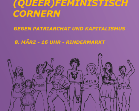 Kommt vorbei und cornert mit uns für einen antikapitalistischen Feminismus und eine queerfeministische Klassenpolitik! Gegen rassistische Ausbeutung und Gewalt! In Solidarität mit allen queerfeministischen Kämpfen weltweit! Für alle, die vom Patriarchat unterdrückt werden! Für eine befreite Gesellschaft!
