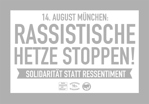 Für Donnerstag, den 14. August 2014 planen Nazis der NPD-nahen ‚Bürgerinitiative Ausländerstopp‘ (BIA) erneut eine Kundgebung in der unmittelbaren Umgebung der Erstaufnahmeeinrichtung in der ehemaligen Bayernkaserne.