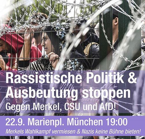 22092017gegenmerkelcsuundafd September 14, 2017 501 × 480 Rassistische Politik & Ausbeutung stoppen – Gegen Merkel, CSU und AfD!
