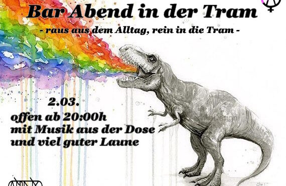 Geht es euch auch oft wie der oiden Rexi*? Der Alltag nervt und du möchtest einfach mal in lockerer Runde chillen und in einem coolem Gespräch den Frust über die Zustände der Gesamt Scheiße raus lassen? Dann komm diesen Samstag zu unserem Bar Abend in die Tram! Zu Musik aus der Dose und kühlen Getränken, triffst du auf Gleichgesinnte! Ab 20:00h ist offen und wir freuen uns auf euch Ⓐ!