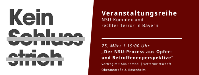 Sembol kl Januar 27, 2018 700 × 266 [Rosenheim] „Der NSU Prozess aus Opfer- und Betroffenenperspektive“ – Vortrag von Alia Sembol (NSU- watch)