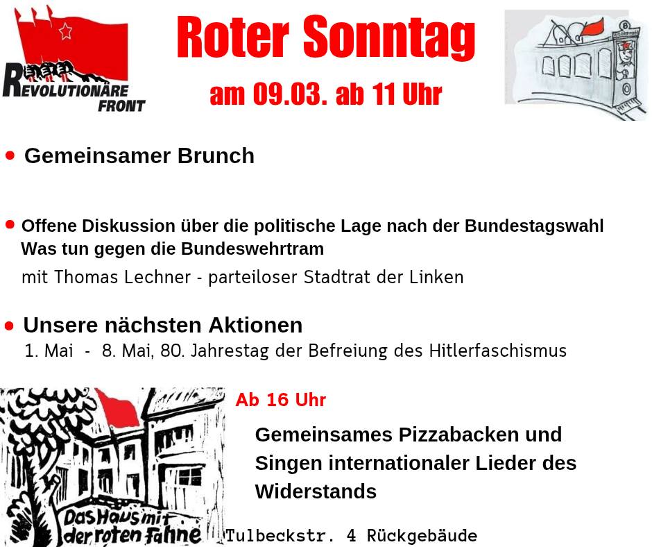 März 8, 2025 940 × 788 Roter Sonntag: Brunch & Offene Diskussion über die politische Lage nach der Bundestagswahl