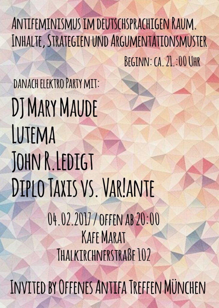 Vortrag&Party: Antifeminismus im deutschsprachigen Raum. Inhalte, Strategien und Argumentationsmuster