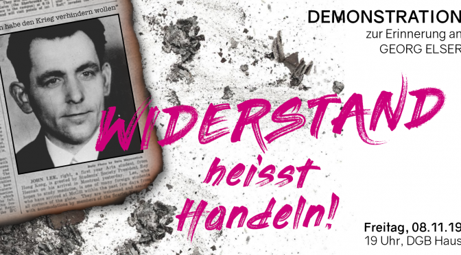 Wir wollen Georg Elser und seine mutige Tat – und mit ihm alle antifaschistischen Widerstandskämpfer_innen – mit einer Demonstration ehren. Seine Entschlossenheit und Opferbereitschaft sind uns heute Vorbild. Die faschistische Bewegung ist so stark wie noch nie seit der militärischen Zerschlagung des NS-Regimes. Die AfD verbreitet in Parlamenten rassistische Hetze. Die Regierung verschärft die Entrechtung, Inhaftierung und Abschiebung von Geflüchteten mit immer neuen Gesetzen. Rassist_innen auf der Straße verletzen und ermorden MigrantInnen. Rechte Bullen und Bundeswehrsoldaten legen Waffendepots an, um am „Tag X“ Linke zu liquidieren. Das Vorbild Georg Elsers zeigt uns: jede_r kann etwas tun. Unsere Zeit erfordert antifaschistischen Kampf und organisierte Selbstverteidigung gegen rechts – auf allen Ebenen und mit allen Mitteln, die notwendig sind.